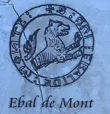 Ebulo de Montibus (French Ebal II de Mont) (c.1230 – 1269) Born as a younger son of Ebal I de Mont and his wife, Beatrice, Ebal II was first noted in 1237. Born in the Pays de Vaud, now Switzerland then Savoy. The Famille de Mont held the castle at Mont-le-Grand near Rolle. Better known in English records as Ebulo de Montibus, Ebal II de Mont had travelled to England by 1246. A household knight of King Henry III of England, granted much land in England. By 1256 he was part of the Savoyard circle of the Lord Edward (possibly steward), later King Edward I of England. Recorded as a Steward in the household of King Henry III of England from 12 November 1256 until 26 May 1263.[1] A witness for King Henry III at the Mise of Amiens, where he swore for the king's good conduct in accepting King Louis XIVs arbitration. Left England during the Second Barons' War with Queen Eleanor of Provence and Peter II, Count of Savoy and active in attempting to raise an army loyal to the crown. Rewarded for his loyalty by being made Constable of Windsor Castle.