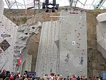 When it opened in December 2003, the centre was the largest indoor climbing arena in the world, but problems during construction increased the final cost to £22 million.[2][6] In March 2004 the centre went into receivership due to a leaky roof, poor management, and a lack of money, leaving a number of contractors unpaid.[7][8] It was purchased by the City of Edinburgh Council in October 2005 for £3.87 million, and then closed in August 2006 to allow full completion of the venue.[9][10][11]
