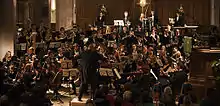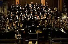 The Symphony Orchestra, a large fully auditioning orchestra of high standard, is conducted by William Conway. They perform works from a wide range of composers including romantic and 20th century artists. Recent performances have included pieces by Mahler, Shostakovich, Sibelius, Dvořák, Tchaikovsky, Chausson and Rimsky-Korsakov, amongst others. As with Sinfonia, the Symphony Orchestra perform with Chorus once every two years. In 2011 this piece was Elgar's Dream of Gerontius.[7]