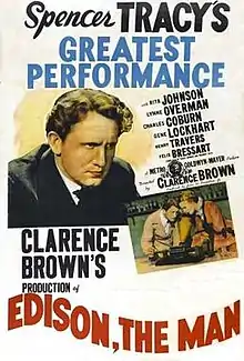 Edison, the Man is a 1940 biographical film depicting the life of inventor Thomas Edison, who was portrayed by Spencer Tracy. Hugo Butler and Dore Schary were nominated for the Academy Award for Best Writing, Original Story for their work on this film. Typical of most Hollywood biopics, much of the film fictionalizes or exaggerates the real events of Edison's life.[2]