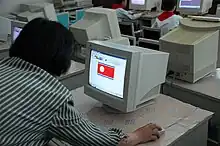 A computer class at a school. The computer shown here is running Red Star OS Version 1.0./Beta