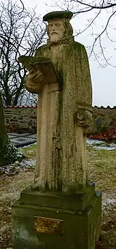 Statue of Kelley at Hněvín Castle in Most, Czech Republic