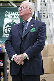 Edward Michael Burke (born December 29, 1943) is an American politician found guilty of racketeering, bribery, and extortion[1] who served as the alderman of Chicago's 14th ward from 1969 to 2023. A member of the Democratic Party, he was first elected to the Chicago City Council in 1969, and represented part of the city's Southwest Side. Chair of Council's Committee on Finance, Burke had been called Chicago's "most powerful alderman" by the Chicago Sun-Times.[2] Burke was named one of the "100 Most Powerful Chicagoans" by Chicago Magazine, describing him as "[o]ne of the last of the old-school Chicago Machine pols."[3]