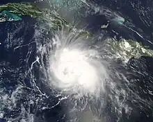 The effects of Hurricane Charley in Jamaica included one fatality and at least $4.1 million in damages.[1] Forming out of a tropical wave on August 9, 2004, Charley quickly tracked through the eastern Caribbean and attained tropical storm status on August 10. While passing south of Jamaica on August 11, the storm was upgraded to a Category 1 hurricane. During its passage of Jamaica, Charley had maximum winds of 75 mph (120 km/h), a low-end Category 1 hurricane. Turning north, the storm impacted western Cuba as a Category 3 storm before making landfall in Florida as a strong Category 4. The storm eventually dissipated on August 15. As Charley approached Jamaica, officials issued tropical storm watches and warnings before issuing a hurricane watch. Two cruise ships were diverted from docking in Jamaica, affecting 5,700 passengers. Numerous shelters were set up across the island; however, relatively few people sought refuge in them.