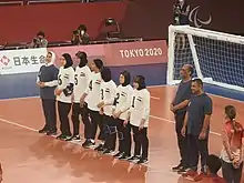 Egypt women's women's goalball team lined up against Japan, Tokyo 2020 Paralympic Games (August 2021).