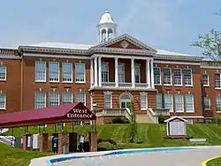 Eichelberger High School, also known as Hanover Middle School and Eichelberger Academy, is a historic high school building located at Hanover, York County, Pennsylvania. It was built in 1896, and altered and expanded in 1931-1932, with few design elements from the original building remaining. It is a five-part brick building in the Georgian Revival style, with a main building flanked by two wings connected by hyphens. The main building features a portico supported by six Ionic order columns and topped by a hipped roof and cupola.[2]