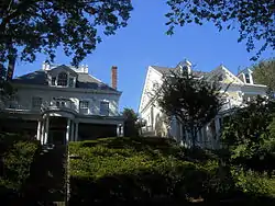 Built around the turn of the 20th century, the houses occupy terraces above Park Road, which is a curving cross-town street. They are unique in that they are large, custom-designed house in an area of the city that is primarily made up of row houses.[2] The people who built the houses were businessmen, bankers and other professionals. They employed several prominent local architects who designed the houses in a variety of styles, especially Colonial Revival. The architects include Frederick B. Pyle, Harding & Upman, Appleton P. Clark, Jr., and C.A. Didden & Son.[2]