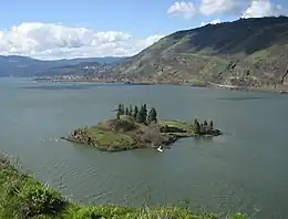![]() Eighteenmile Island from an observation point on the Oregon side | |