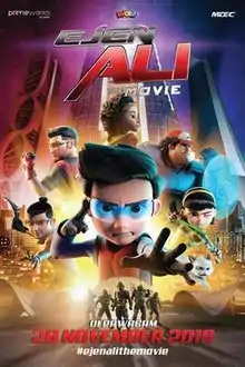 Ejen Ali: The Movie (sometimes also subtitled MISSION: NEO) is a 2019 Malaysian Malay-language computer-animated spy-fi action film. The film follows a 12-year old spy Agent, Ali, as he embraces his role in MATA, the secret agency, and uncover the secret technology which has threatened the fate of Cyberaya. But unknown to Ali, MATA has also created a new improved version of IRIS, the IRIS NEO, to use the Override at will. While the new device itself begin to use for all agents, Ali question his usefulness to MATA. He is approached by another mysterious person named Niki, who holds a personal connection between Ali. Risking his loyalty to MATA, Ejen Ali will now embarks his thrilling chase to unravel those mysterious links.