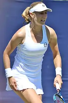 The following week, she reached the semifinals of the Birmingham Classic, losing to Melanie Oudin.[22] She reached the quarterfinals at Eastbourne but lost to Angelique Kerber. At Wimbledon, she defeated Alberta Brianti in the first round. She lost to Kerber in the second round.