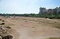 In the early second century CE, Emperor Hadrian, who visited the cities of the East around 130 CE, conferred the title of Metropolis on Tyre: "great city" mother of other cities.[14] Subsequently, a triple-bay Triumphal Arch, an aqueduct from the springs of Ras al-Ain some six kilometers to the South and the Tyre Hippodrome were constructed. The arch was 21 meters high and became the gateway of the Roman town. At its side pillars were erected that were more than four meters high and carried the water canal alongside the road into the town on the peninsula.[15] The hippodrome is the largest (480m long and 160m wide) and best-preserved Roman hippodrome after the one in Rome.[16] The amphitheater for the horse-racetrack could host some 30.000 spectators. During the third century CE, the Heraclia games – dedicated to the deity Melqart-Heracles (not to be confused with the demigod Heracles, hero of the 12 labors) – were held in the hippodrome every four years.[14]