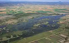 The former El Cañizar lake (Spanish: Laguna del Cañizar) was an extensive freshwater wetland located at the bottom of the Jiloca tectonic trench[1][2] next to the town of Villarquemado, Spain. Its waters covered part of the municipalities of Cella, Santa Eulalia del Campo and Villarquemado, all of them belonging to the Comarca de la Comunidad de Teruel, Province of Teruel, Autonomous Community of Aragón. Before being drained at the beginning of the 18th century, its waters covered 1130 ha with a maximum depth of 2.8 meters and a stored water volume of 18.7 hm3.[3][4][5]