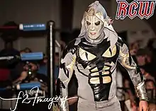 He began wrestling under the ring name "Black Spirit" and wore a mask and outfit that was greatly inspired by his father's iconic skeleton suit. Both L.A. Park and Black Spirit denied they were related, using a storyline that Black Spirit was a big fan of L.A. Park and had been given permission to use a variation of the mask.[2] At other points it was claimed that Black Spirit was L.A. Park's "star pupil" to explain the almost identical masks without admitting to the family relationship.[5] Initially Black Spirit worked for various local wrestling promotions in Mexico, gaining valuable experience as he worked with or against other Skayde students such as Black Thunder, Turbo, Skayde, Jr. and Skayde himself.[2] He developed a long running feud with Black Thunder, a feud Black Spirit himself hoped would lead to his first ever Lucha de Apuesta, bet match.[2] Black Spirit challenged Skayde for his NWA Mexico Welterweight Championship in a Torneo cibernetico style match, but lost to Turbo.[6] Black Spirit was initially described as "nervous but with promise" after one of his early matches.[7] In interviews he stated that he preferred the high flying style but could also mat wrestle if need be.[2] Through his father's connections Black Spirit often worked on the same shows as his father, including the debut show for the Perros del Mal Producciones where his father was headlining the show. Black Spirit teamed with Turbo and Super Nova to defeat Black Thunder, Cerebro Negro and X-Fly in the third match of the night.[8] Afterwards it was commented that Black Spirit was impressive in his first showing for Los Perros del Mal.[9] He also appeared in the semi-main event at a tribute show held for Pierroth, Jr., teaming with Guerrero Maya, Jr. and Canelo Casas against El Hijo de Cien Caras, Cien Caras, Jr. and Máscara Año 2000, Jr. The show also featured L.A. Park in the main event.[10] Throughout 2009 Black Spirit kept appearing on Perros del Mal shows that also featured LA Park,[11] leading to further speculation that the two were indeed related. By early 2010 it was a very poorly kept secret that Black Spirit was the son of LA Park.[12][13]