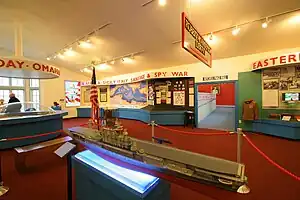 The Gallery of Valor was unveiled November 11, 2006. The displays take visitors through six areas: Training, Shipping and Transportation, U.S. Navy in Action, North Africa-Sicily-Italy, Sabotage and Spy War and the Eastern Front.A diorama depicting Omaha Beach sits in the center of the Gallery of Valor. Also present is a weapons display featuring a training rifle, M1 carbine, M1 Garand and a Colt .45 pistol.