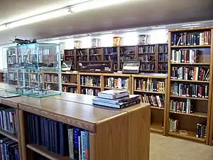 Also displayed in the library are Uniforms, Newspaper articles, and metals in cases across the room.