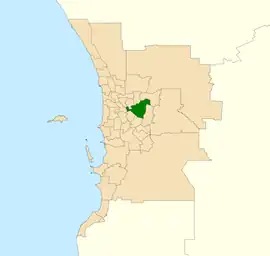 * "Electoral Districts Act 1947-1965 - Order in Council". Western Australia Government Gazette. 14 June 1972. p. 1972:1833-1893. - ↑ Western Australian Electoral Commission (29 October 2007). "2007 Electoral Distribution - Final Boundaries - East Metropolitan - Belmont". Archived from the original on 8 October 2008. Retrieved 2008-08-05.