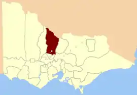 Bounded on the north by the Murray; on the east by the Campaspe; on the south by the Myrtle Creek and the northern boundary of Maldon, and on the west by the River Loddon, excluding the parish of Tarnagulla and the electoral district of Sandhurst[1]