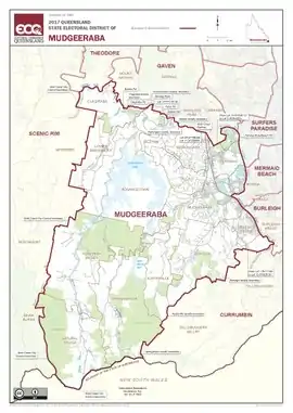Mudgeeraba is an electoral district of the Legislative Assembly in the Australian state of Queensland. Based on the Gold Coast, the district has been held by both sides of politics over the course of its short history.[1]