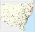 At the 2007 election it included most of Bellingen Shire (including Bellingen and Dorrigo), Nambucca Shire (including Nambucca Heads, Macksville and Bowraville), Kempsey Shire, some of inland Port Macquarie-Hastings Council, including Wauchope, the lightly inhabited northwest of the Mid-Coast Council, and the lightly inhabited eastern fringe of Walcha Shire and Armidale Regional Council.[3]