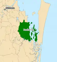 Redlands is an electoral district of the Legislative Assembly in the Australian state of Queensland. It primarily covers coastal suburbs on the southside of the city of Brisbane, from Thornlands south to the Logan River.[1]