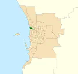 ![]() Location of Scarborough (dark green) in the Perth metropolitan area | |
