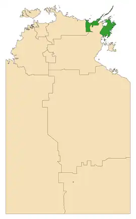 Mulka is an electoral division of the Northern Territory Legislative Assembly in Australia. It was created in a 2019 redistribution for the 2020 general election, replacing the electoral division of Nhulunbuy.[1] At that election, independent Nhulunbuy incumbent Yingiya Mark Guyula won the seat in a tightly contested rematch of the 2016 general election.