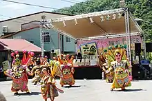 Electric-Techno Neon Gods (Chinese: 電音三太子; pinyin: Diànyīn Sāntàizi; Pe̍h-ōe-jī: Tiān-im Sam-thài-chú), sam thai tsu (Chinese: 三太子; pinyin: Sāntàizi; Pe̍h-ōe-jī: Sam-thài-chú), or Techno Prince Nezha is a subcultural dance performance which combines a traditional Taiwan folk dance performance (Chinese: 陣頭; pinyin: zhèntóu; Pe̍h-ōe-jī: tīn-thâu) with modern pop music.
