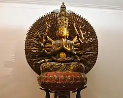 The Thousand-armed Avalokiteśvara with eleven heads is the most popular form. The number of heads increases to twenty five, and sometimes the crown bears upto five hundred heads.[11]