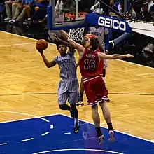 Payton in February 2015, attacking the basket against Pau Gasol.