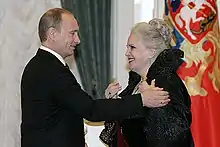 Elina Bystritskaya receives the Order "For Merit to the Fatherland" I degree from Vladimir Putin in 2008