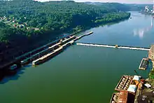 Elizabeth Locks & Dam is one of nine navigational structures on the Monongahela River between Pittsburgh, Pennsylvania and Fairmont, West Virginia. Maintained and built by the U.S. Army Corps of Engineers, the gated dam forms an upstream pool that extends for 23.8 miles, stretching to Charleroi, Pennsylvania.[1]