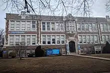 Battin High School was constructed in 1913 at 300 South Broad Street on the site of a mansion that had been donated to the city nearly 25 years earlier by Joseph Battin, president of the Elizabethtown Water Company, and namesake of the school.[21] Originally operated on a coeducational basis, the school became female only starting in 1929, after Thomas Jefferson High School was constructed and dedicated to serve male students.[22] In 1977, district officials stated that the inability to determine attendance zones for the two comprehensive high schools after Thomas Jefferson High School opened in 1929 combined with the expansive shop facilities in the new building, led the district to decide to split students by sex, with girls at Battin and boys at Thomas Jefferson.[23] By 1972, Battin was the only public high school in New Jersey operated exclusively for women, despite coeducational programs at both Princeton University and Vassar College. By that time, a policy under which pregnant students had been required to withdraw from school had been eliminated and students were allowed to return to school after giving birth and attending a special off-site program during their pregnancy. Though 40% of graduating students went on to college and district officials insisted that the curriculum was standard across the district's separate high schools, a student criticized the difference in expectations of male and female students, noting that "Boys are expected to be engineers and attorneys. Girls are supposed to be secretaries and mothers."[24]