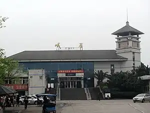 Emei railway station is a railway station in Suishan, Emeishan City, Leshan, Sichuan, China. It is cross-shaped, with the lower north–south platforms serving the Chengdu–Kunming railway and the upper east–west platforms serving the Chengdu–Mianyang–Leshan intercity railway.