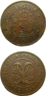 Empire of China ten-cash coin dated "Hongxian Year 1"