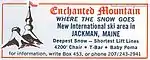 Enchanted Mountain was designed by E.H. Lord-Wood Associates and built in 1965 by North Haven Construction Company on land that was reportedly leased from Scott Paper Company, who would later become owner of nearby Big Squaw Mountain Resort. The ski area first opened in February 1966[2] with two lifts: a T-bar that would serve only two trails above the base lodge that season and a baby poma lift to serve the beginner ski area below the lodge.[1] The following year a 4,200 ft. Poma double chairlift was constructed to the summit, increasing the trail count to seven. One wide open slope was located underneath the lift with six narrower, winding trails fanning out from the top. The vertical drop was only about 1000 ft. but some brochures and guidebooks exaggerated it to as much as 1800 ft. The area boasted that it had the deepest snow and shortest lift lines. In 1968 the lifts operated daily and an adult lift ticket was only $5.50.[2]
