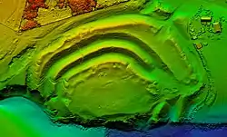 LiDAR is an aerial tool introduced to archaeology in the 1970s, and in modern times has been used greatly amongst the archaeological community for remote sensing.[22] LiDAR has developed popularity in recent years among the archaeological community. It is able to produce three-dimensional mapping of earthworks and high-resolution topographical data.[24] LiDAR's advantages can be attributed to its flexibility, small laser footprint, non-invasive technology, price, and far-reaching field of view.[24][22] The most prominent and discussed advantage of LiDAR is its ability to map human impact through identifying cultural features of landscapes.[24] However, LiDAR is restricted in its ability to maintain effectiveness when mapping large areas.[22]
