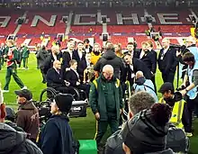 England wheelchair rugby league team celebrating at Old Trafford in 2022