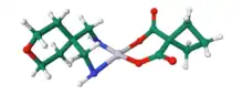 2. Bitha P, Carvajal SG, Citarella RV, Child RG, Delos Santos EF, Dunne TS, et al. (August 1989). "Water-soluble third generation antitumor platinum complexes, [2,2-bis (aminomethyl)-1,3-propanediol-N,N']-[1,1-cyclobutanedicarboxylato (2-)-O,O']platinum(II) and [1,1-cyclobutanedicarboxylato(2-)-O,O'] [tetrahydro-4H-pyran-4,4-dimethanamine-N,N']platinum(II)". Journal of Medicinal Chemistry. American Chemical Society (ACS). 32 (8): 2015–2020. doi:10.1021/jm00128a052. PMID 2754720.
