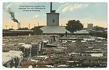 Cotton is the most common crop in the world aside from food.[28] Half of all textiles produced are made of the fiber.[28]Cotton is a water-intensive crop, requiring 3644 cubic meters of water to grow one ton of fiber, or 347 gallons per pound.[29] Growing cotton requires 25% of insecticides and 10-16% of pesticides of what is used globally every year.[30][29] Half of the top pesticides used in growing cotton in the US are deemed likely to be carcinogenic by the United States Environmental Protection Agency.[29] Cotton production degrades the quality of the soil, leading to exhausted fields and expansion into new areas.[28] Expansion into new areas leads to the destruction of local habitats and the associated pollution affects biodiversity.[28]