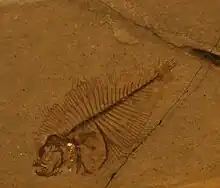 Eobothus is significant as one of the earliest genera of flatfish, one of the last major fish groups to evolve. It closely resembled modern flatfish, with an oval-shaped body about 10 centimetres (4 in) long, surrounded by elongated dorsal and anal fins.[1] In the adult, the eyes were both located on the left side of the head, as in modern species, and the fish would have lain flat against the seafloor on its right side. This was an evolutionary advance from still earlier flatfish, such as Heteronectes, in which the eyes only partially migrated.[2]