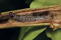 The wingspan is 14–16 mm.[2] Adults are on wing from June to July in one generation per year.