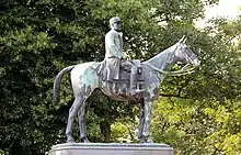 Foch was the recipient of many French and foreign honours; among these the British government awarded him the Order of Merit and made him an honorary Field marshal.[5] Following Foch's death in March 1929, the British civil servant, Lord Askwith established the Foch Memorial Committee to plan and fund a permanent memorial.[5] The French sculptor Georges Malissard was approached and agreed to cast a replica of an earlier equestrian statue he had created of Foch in the French town of Cassel.[6] The choice of a copy of a French statue by a French sculptor was not without controversy; the President of the Royal British Society of Sculptors wrote to The Times to complain, and the Chair of the Royal Fine Art Commission, Lord Crawford, privately described the final design as "a very poor and commonplace thing".[7] Nevertheless, the Memorial Committee pressed ahead, partly due to underfunding of the project and the relatively cheap cost of the replica.[7] The final cost of the statue was £5000.[8]