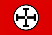 The flag of Libria. The four Ts on the flag represent the Tetragrammaton Council.