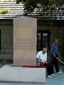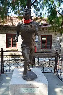 Liddell's first job as a missionary was at the Anglo-Chinese College (grades 1–12) for wealthy Chinese students. The school's principal, Dr. Samuel Lavington Hart, who was educated at University of Cambridge, had been a prominent physicist before founding the school in 1902. Dr. Hart believed that by teaching the children of the wealthy, he would help them become influential figures in China and promote Christian values.[21] Liddell supported the school's mission and began teaching mathematics and science at the school in 1925.[22] Liddell also used his athletic experience to train boys in a number of different sports. According to one of Liddell's former students, Yu Wenji, Liddell "was very serious when protecting students' rights. He once quarreled with the headmaster to ask for more subsidies for students not from wealthy families."[23] One of Liddell's many responsibilities was that of superintendent of the Sunday school at Union Church, where his father was pastor. Liddell lived at 38 Chongqing Dao (formerly known as Cambridge Road) in Tianjin, where a plaque commemorates his residence. He also helped build the Minyuan Stadium in Tianjin.