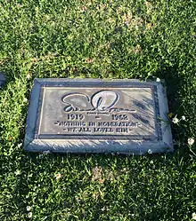 In keeping with Kovacs's wishes, a simple service[101] was held at the Beverly Hills Community Presbyterian Church.[137] The pallbearers included Ernie's best friend Jack Lemmon, Frank Sinatra, Dean Martin, Billy Wilder, and Mervyn LeRoy.[138] George Burns, Groucho Marx, Edward G. Robinson, Kirk Douglas, Jack Benny, James Stewart, Charlton Heston, Buster Keaton and Milton Berle also attended.[139] The pastor said that Kovacs had summed up his life thus: "I was born in Trenton, New Jersey in 1919 to a Hungarian couple. I've been smoking cigars ever since."[140] He is buried in Forest Lawn-Hollywood Hills Cemetery in Los Angeles. His epitaph reads "Nothing in moderation—We all loved him."[141]