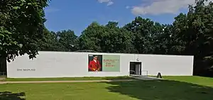 The museum was founded by the industrialist Hermann F. Reemtsma,[1] and is located in the Jenisch park in Othmarschen in the west of the city. The squat, functionalist museum building was begun in 1961 by the Hamburg architect Werner Kallmorgen,[2] finished in 1962 after Reemtsma's death, and extended in 1996 with new rooms for temporary exhibitions. There is also a library containing literature on Barlach and his era.