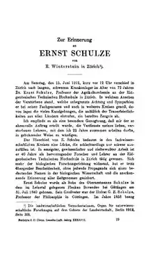 • Ernst Winterstein: Ernst Schulze. In: Verhandlungen der Schweizerischen Naturforschenden Gesellschaft. Vol. 95, 1912.