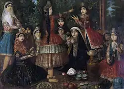 Esmail Jalayer was an Iranian painter notable artist of Naser al-Din Shah Qajar reign era (1848-1896). He was peculiarly well known for his works in two admired dissimilar classes of Qajar paintings. irāni-sāzi (focusing on Iranian templates, sketching on face-related aspects, make-up, costume, and comparatively unchanged by European influences) and ṭabiʿat-sāzi (concentrating on fauna and flora in a European realistic mode, targeting at realism). Esmail was the son of Haj Mohammad Khan Jalayer Kalati from a former and renowned family of Khorasan but there are no accurate details about the dates of his birth and death or location of the interment. Furthermore, just a few of his works have been written a date: one is a portrait of Naser al-Din Shah Qajar in watercolor, dated 1862, others include a depiction of a scene from the Anglo-Persian War (1856) companions and those of the founders and luminaries of Sufi sects and dervishes.