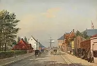 In the 19th century, the Guard Hussars barracks were located at the western end of the street, first on its north side and later also in a building on its south side. It was demolished about 1900 and the site was built over in connection with the establishment of Grønningen. The masterplan for the area was adopted on 29 June 1903. The smaller streets in the area have names associated with the island of Bornholm.[4]