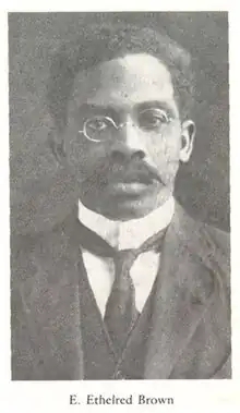 Egbert Ethelred Brown (11 July 1875 – 17 February 1956)[1] was a Jamaican-born American Unitarian minister.[2][3] He founded a Unitarian church in Harlem, and became a leading voice in promoting the independence of Caribbean nations and liberal religion during the Harlem Renaissance.[4][1][5]